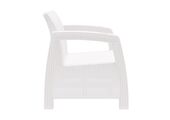 Диван произведен из высококачественного полипропилена, имитирующего плетение из ротанга. Диван имеет три посадочных места. На подлокотниках дивана расположены отверстия для напитков. Благодаря цветовым решениям диван подойдет под любой интерьер. Диван упаковывается в индивидуальную упаковку, инструкция по сборке прилагается.