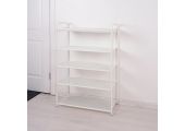 Долговечная, благодаря каркасу и полкам из стали. Четыре полки вместят до 12 пар обуви, а продуманные расстояния между ними позволят разместить как летнюю, так и зимнюю обувь. Каждая полка выдерживает нагрузку до 8 кг. Верхняя корзина позволяет разместить разные мелочи, а боковые крючки – ложку для обуви и ключи.
