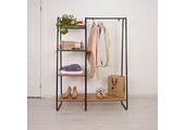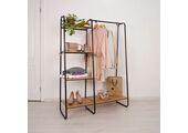 Сочетание дерева с металлом позволит разместить систему хранения в любом интерьере. Долговечная, благодаря каркасу из стали, покрытому полимерно-порошковым покрытием. Полки стеллажа сделаны из ЛДСП. На перекладине можно разместить как плечики, так и подвесить цветы. Перекладина вмещает до 10 плечиков и выдерживает нагрузку до 20 кг. Понятная сборка, благодаря пошаговой инструкции.