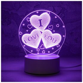 Ночник Три сердца, в подарок ребенку и взрослому, любимым и родным. Создает уют и комфорт в помещении.