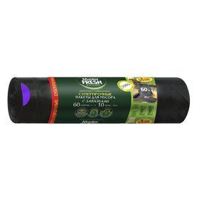 Мешки для мусора суперпрочные с завязками Master Fresh, усиленное дно, 28 мкм, 60 л, 10 шт, черные