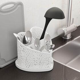Оригинальная подставка под столовые приборы в виде сердца идеально дополнит интерьер Вашей кухни. Пять отделений подставки вместят достаточное количество ложек, вилок, ножей и прочих кухонных принадлежностей. Поддон позволит собрать оставшиеся капли.