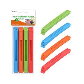 Зажимы для пакетов Мультидом Клип, 14 см, 4 шт