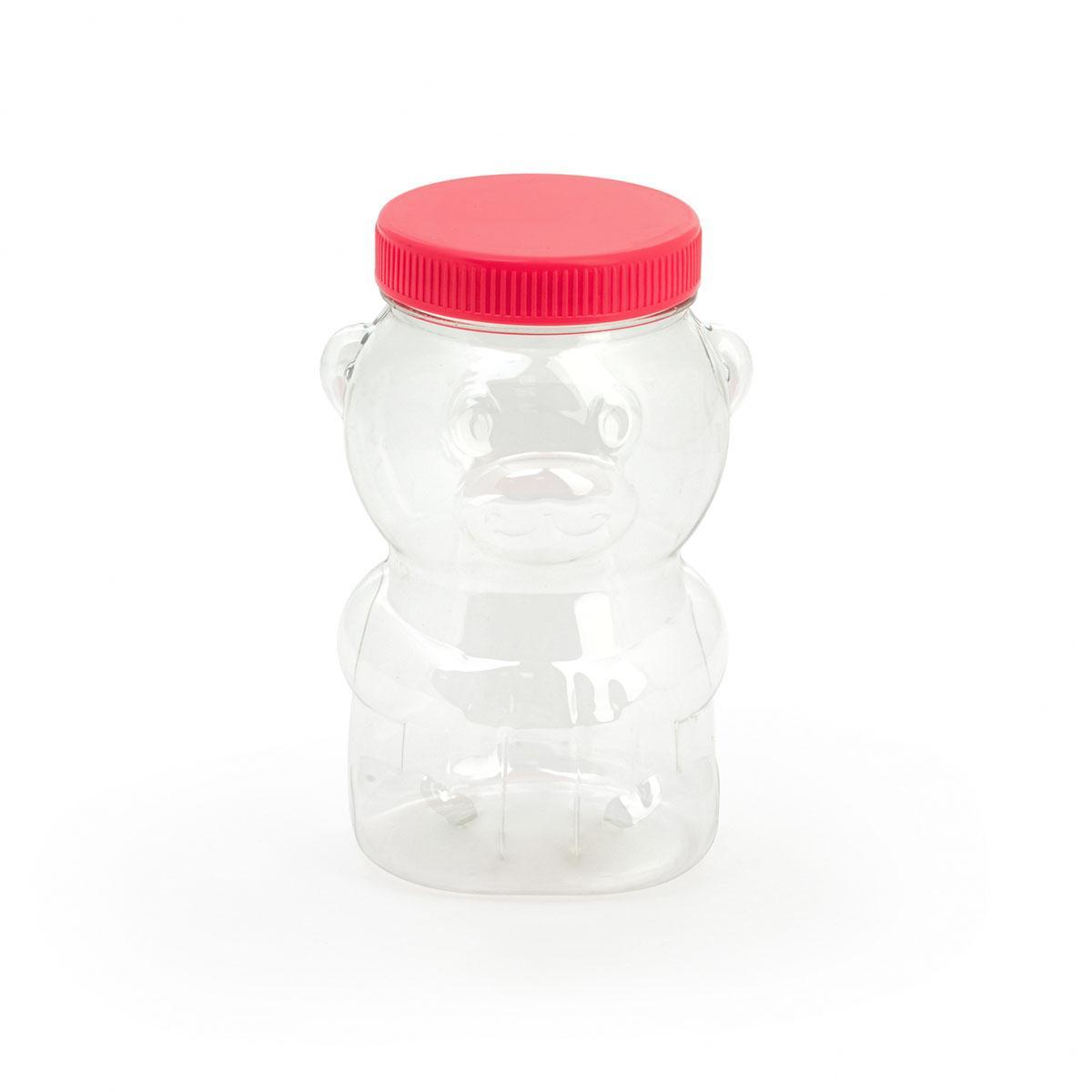Прозрачная банка в форме медвежонка, предварительно наполненная мёдом, привлекательно смотрится как на кухонном столе, так и в качестве подарка для любителей сладкого. Изделие изготавливается из пищевого пластика, легко моется, не бьётся, имеет оптимальный объем 0,5 л.