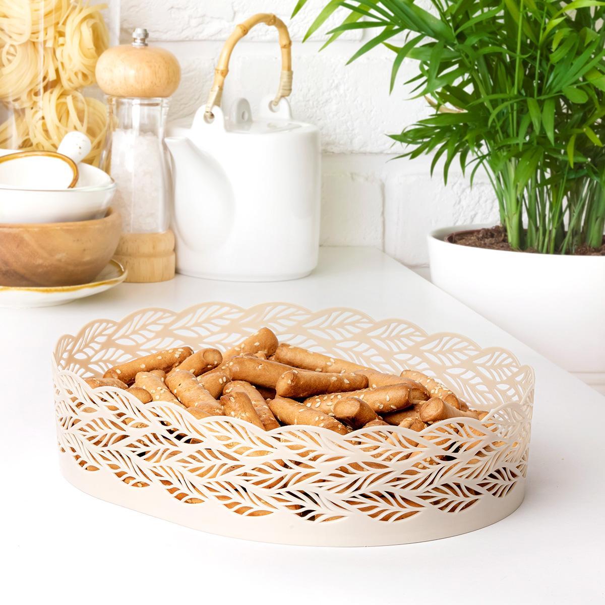 Сухарница «Эдем» идеальный вариант для подачи хлеба, печенья, конфет или для фруктов. Прекрасно подойдет для сервировки праздничного или ежедневного стола. Также подходит для хранения различных предметов, которым все время не находится четкого места в доме. Сухарница выполнена из высококачественного пищевого пластика, имеет небольшой вес и легко моется. Не боится влаги, не впитывает запахи. Сухарница "Эдем" - стильный, компактный, вместительный и легкий кухонный аксессуар, который станет прекрасным украшением вашей кухни.