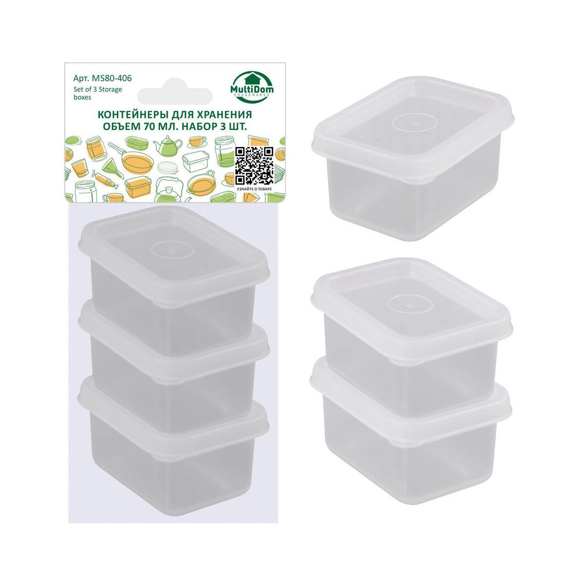 Контейнер для хранения Мультидом, с крышкой, 70 мл, 3 шт