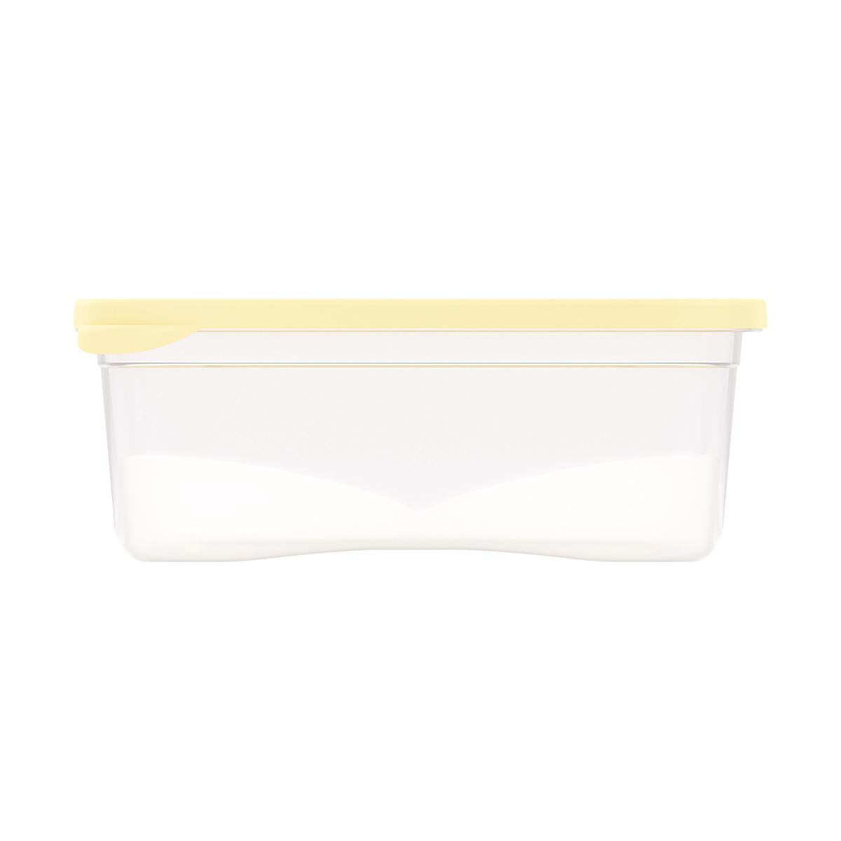 Квадратная форма позволяет ставить емкости одна на другую, рационально используя пространство на полке холодильника. Изделие изготавливается из безопасного пластика, разрешенного для контакта с пищевыми продуктами. Можно мыть в посудомоечной машине.