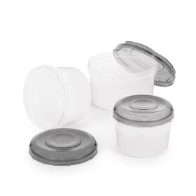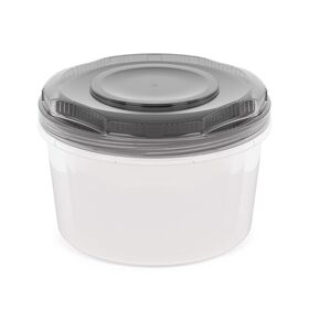 Благодаря прозрачному корпусу видно содержимое. Плотно завинчивающаяся крышка защищает готовые блюда от расплескивания при транспортировке. Матовая поверхность корпуса не дает емкости выскользнуть из рук при снятии крышки. Пустые емкости тарируются, экономя место на полке шкафа.