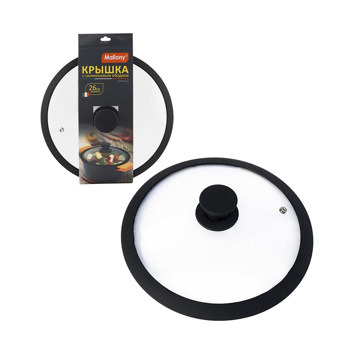 Крышка стеклянная Mallony Cappello, 26 см, силиконовый ободок, паровыпуск