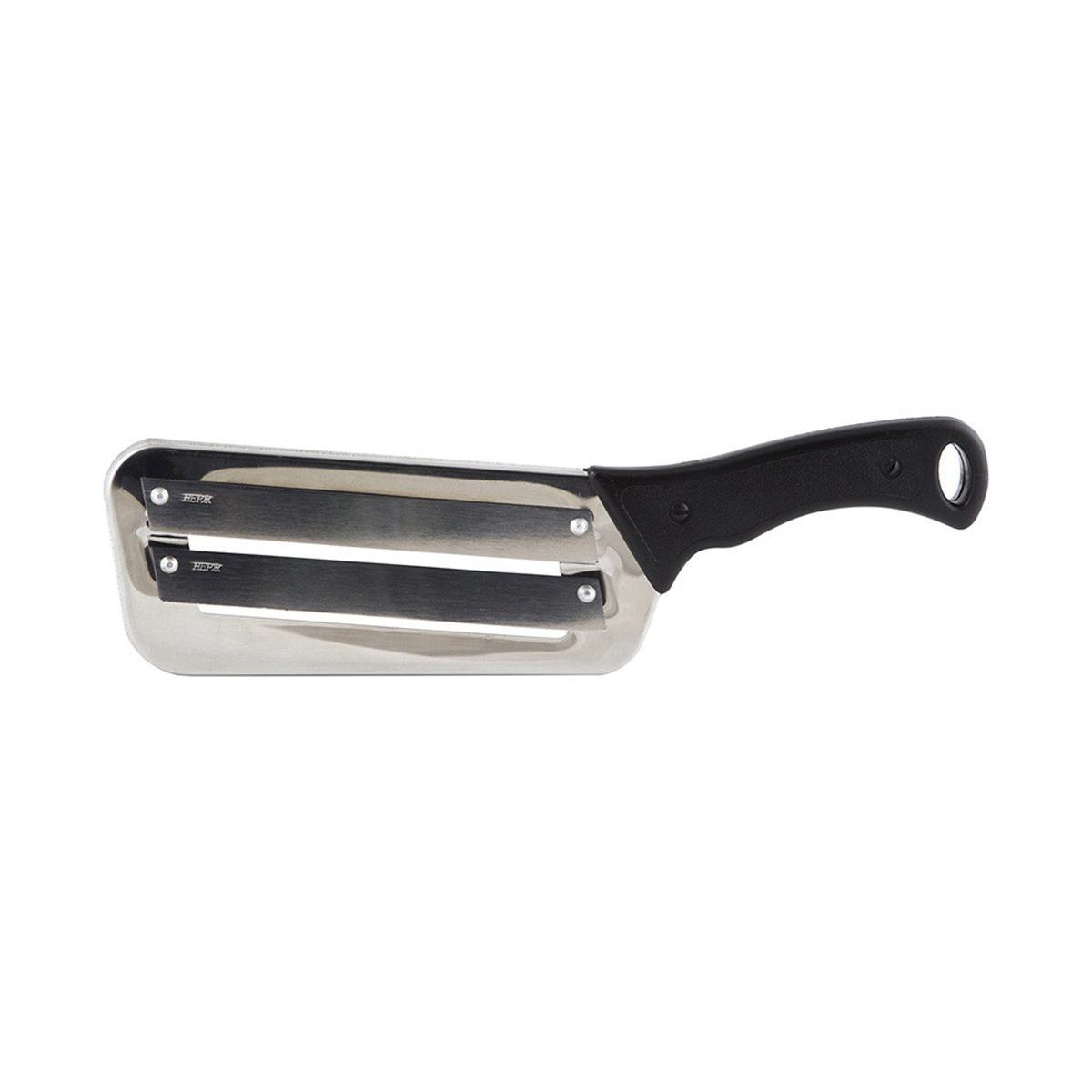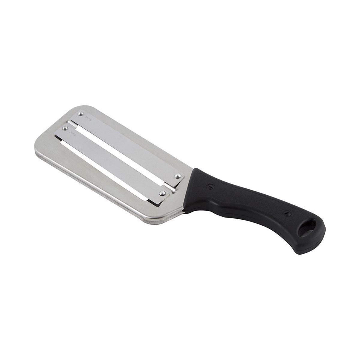 Шинковка для капусты изготовлена из высококачественной нержавеющей стали. Двойное лезвие обеспечивает быструю резку, нарезка получается тонкой, ровной и аккуратной. Лезвие имеет высокую твердость для долголетней службы. Рукоятка изделия выполнена из пластика, она удобно лежит в руке и обеспечивает комфортную резку.