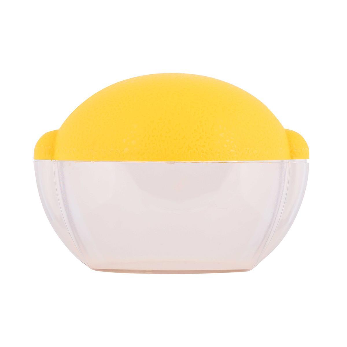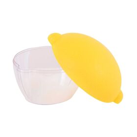 Изделие состоит из прозрачного поддона и оригинальной крышки, которая по фактуре и цвету напоминает натуральный лимон. Крышка надежно защищает продукт от высыхания и препятствует проникновению посторонних запахов. Благодаря прозрачности стенок можно увидеть содержимое емкости, не открывая ее. Данное изделие очень компактно, его легко можно разместить даже на дверце холодильника.
