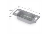 Пластиковый дуршлаг предназначен для промывания различных круп: риса, гречки, гороха, нута, перловки, поэтому имеет мелкие отверстия. В качестве дополнительного функционала есть возможность замачивать крупы, стоит только поставить пластиковый дуршлаг на другой бок, для этого на дне предусмотрены специальные упоры. Дуршлаг имеет удобный бортик для захвата. Матовая поверхность предотвращает соскальзывание изделия из влажных рук.