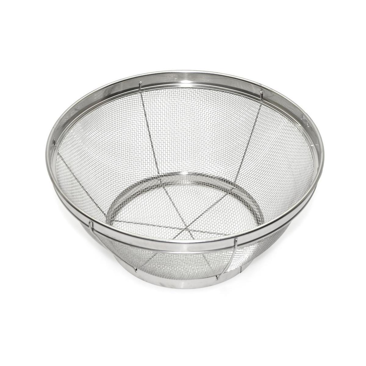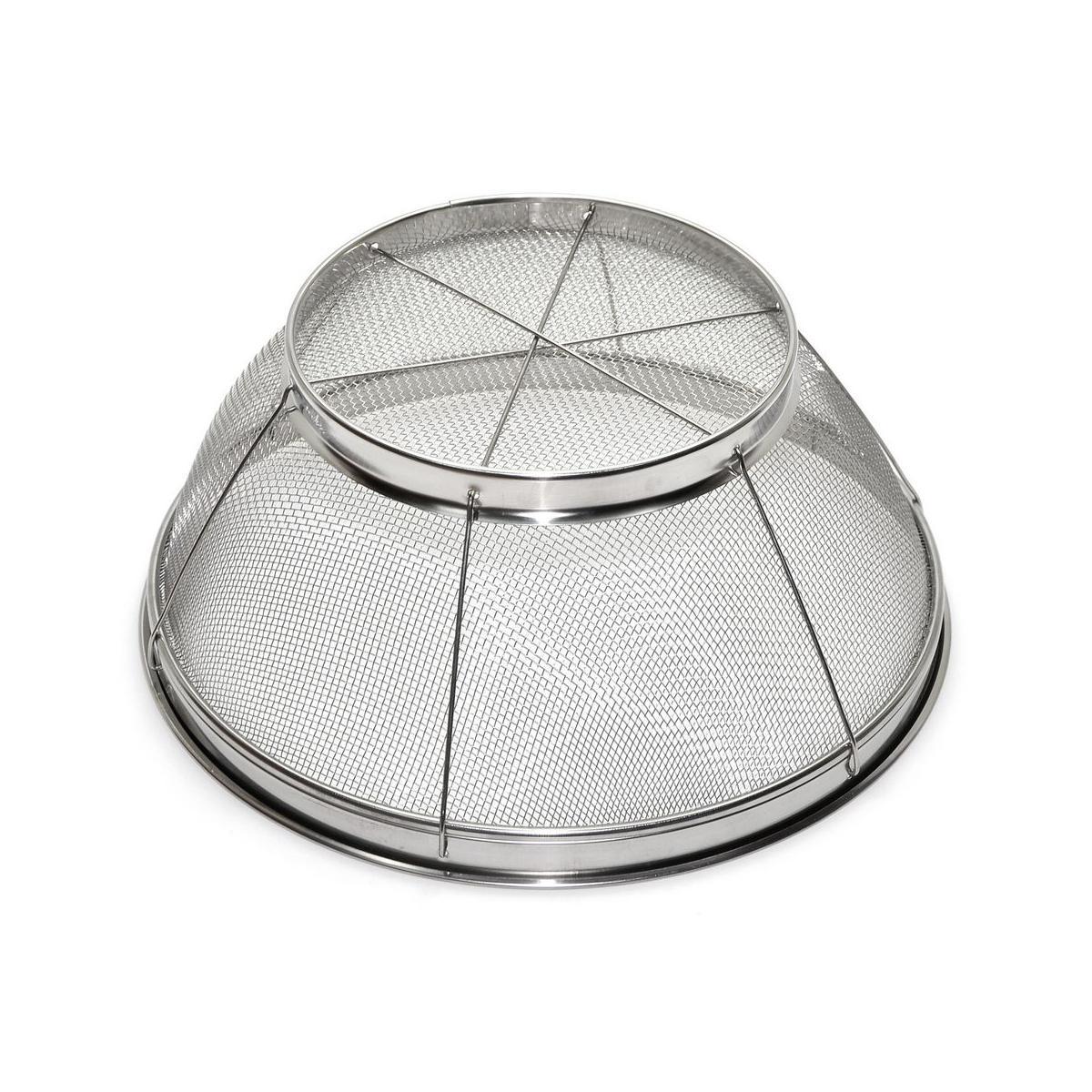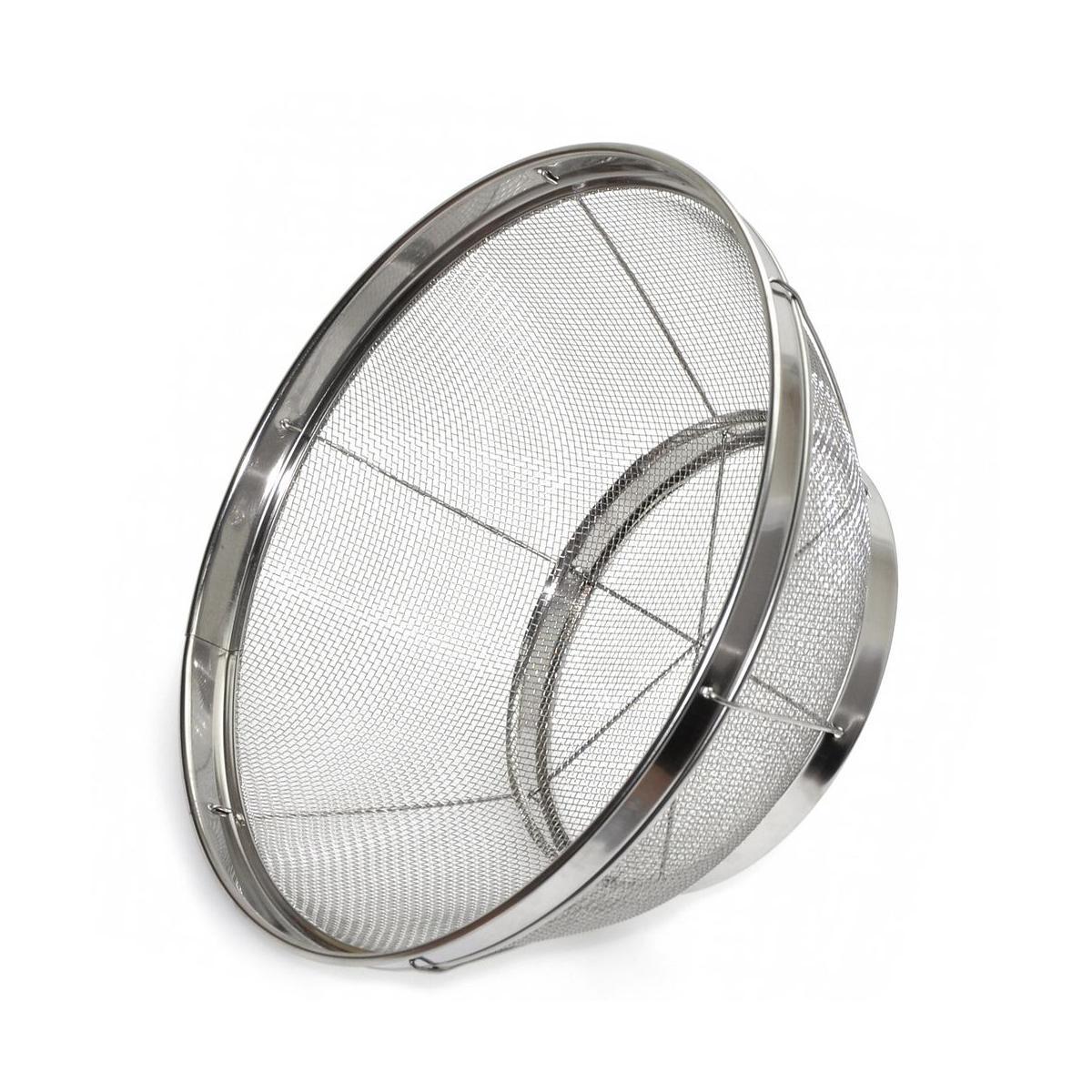 Сито изготовлено из нержавеющей стали с прочным каркасом и подставкой для устойчивости изделия. Материал долговечен, не портится под воздействием влаги, не образует коррозии.