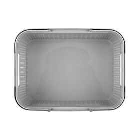 Корзина имеет удобные для переноски ручки-вырезы по бокам корпуса, а также дополнительные съёмные складывающиеся ручки. Сэкономить пространство поможет прямоугольная форма корзины.