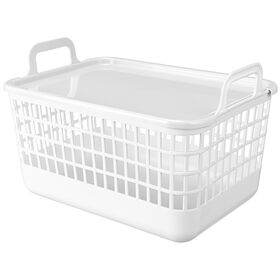 Корзина с крышкой и ручками Бытпласт Kobo, 32 x 22,4 x 21 см, белая