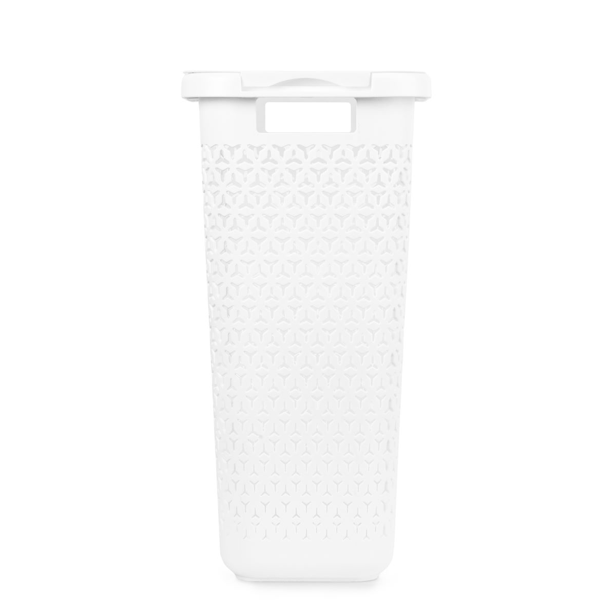 Вместительная корзина для белья идеально впишется в интерьер ванной комнаты или гардеробной. Узор на корпусе предусмотрен для вентиляции и не позволит увидеть содержимое. Прямоугольная форма корзины поможет сэкономить пространство. Гладкая изнутри - не образуются катышки и зацепки на вещах.