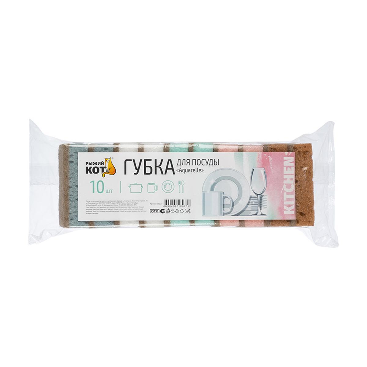 Губки для посуды Рыжий кот Aquarelle, 10 шт