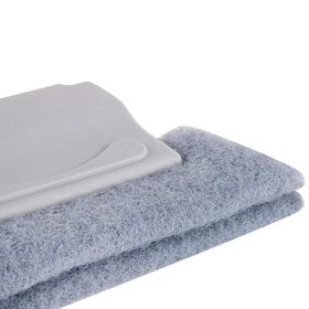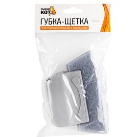 Универсальная губка-щетка для уборки в труднодоступных местах состоит из пластикового держателя и ткани с абразивом.