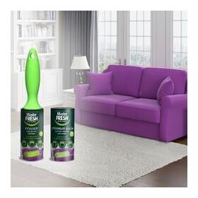 Роллер для чистки одежды Master Fresh убирает ворсинки, нитки, пух, шерсть животных, мелкие крошки и обрывки бумаги. Эргономичная ручка из качественного пластика удобна в использовании - не выскальзывает из руки, не разбалтывается. Липкий слой убирает загрязнения, при этом не оставляя следов на поверхности материала. Диагональная намотка позволяет одним движением удалять использованный слой. В роллере Master Fresh 50 листов. Они легко заменяются.