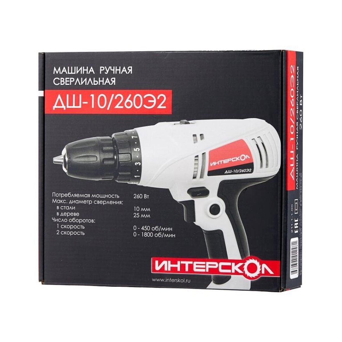 Дрель-шуруповерт Интерскол ДШ-10/260Э2 (211.1.1.00), 260 Вт