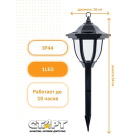 Светильник садовый Старт Фонарь, на солнечной батарее, IP44, 18 x 18 x 52 см