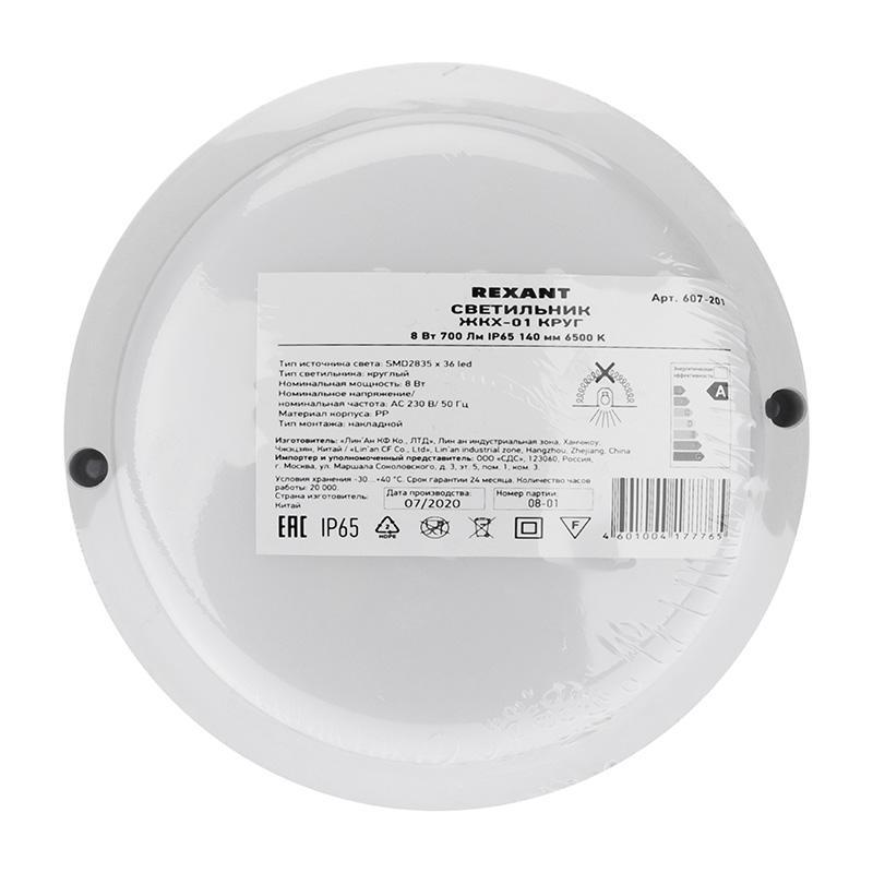 Светильник светодиодный Rexant ЖКХ-01, круглый, 8 Вт, 6500 К, IP65
