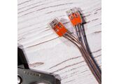 Конструкция клеммы предотвращает случайное размыкание контакта. Контакт осуществляется путем зажима проводника пластиной. Специальное технологическое отверстие на корпусе клеммы предназначено для проверки соединения тестером-пробником или щупом мультиметра. Корпус из пластика делает контакт изолированным.