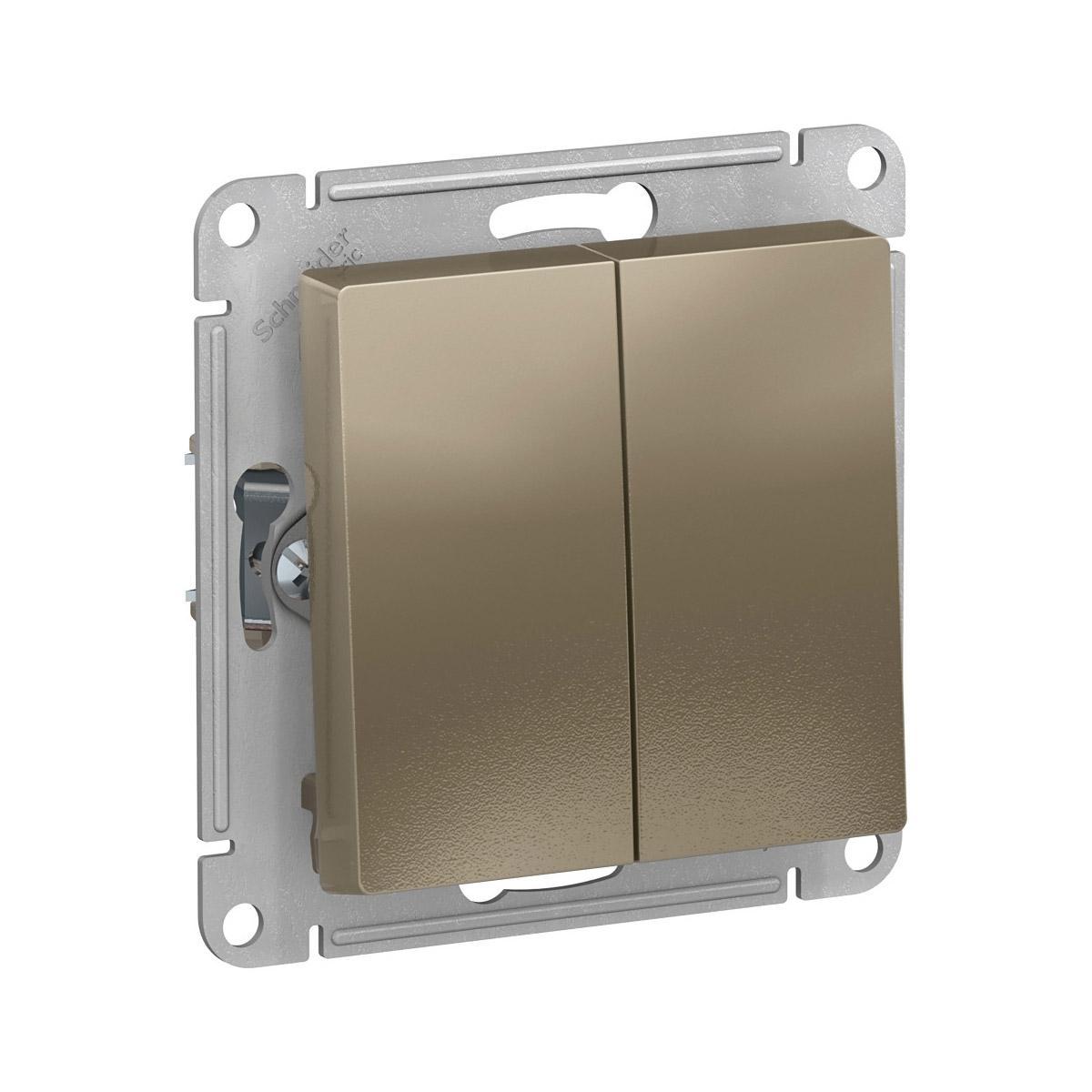 Переключатель двухклавишный встраиваемый Schneider Electric Atlasdesign, 10 A, шампань
