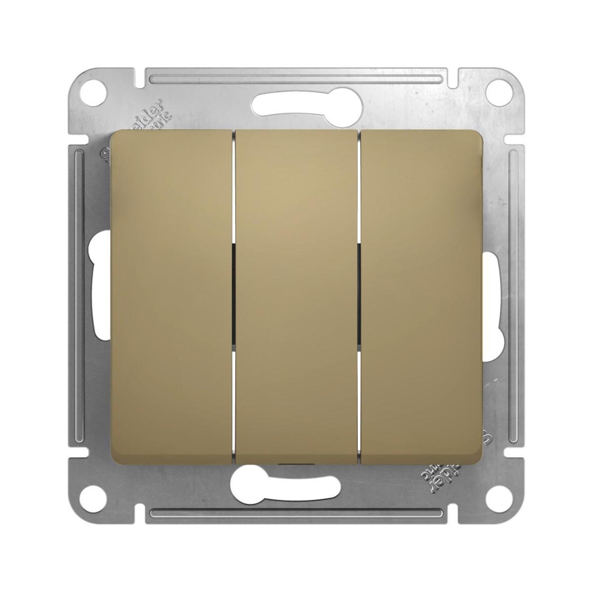 Выключатель трехклавишный Systeme Electric (ранее Schneider Electric) Glossa подходит для сетей 250 В, на ток 10 А. Позволяет управлять тремя источниками света из одной точки. Выполнен из материала, стойкого к УФ-излучению и появлению царапин. Эргономичные клеммы расположены в два ряда: сверху и снизу.