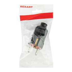Вилка прямая Rexant Евро, с заземлением, 16 A, черная