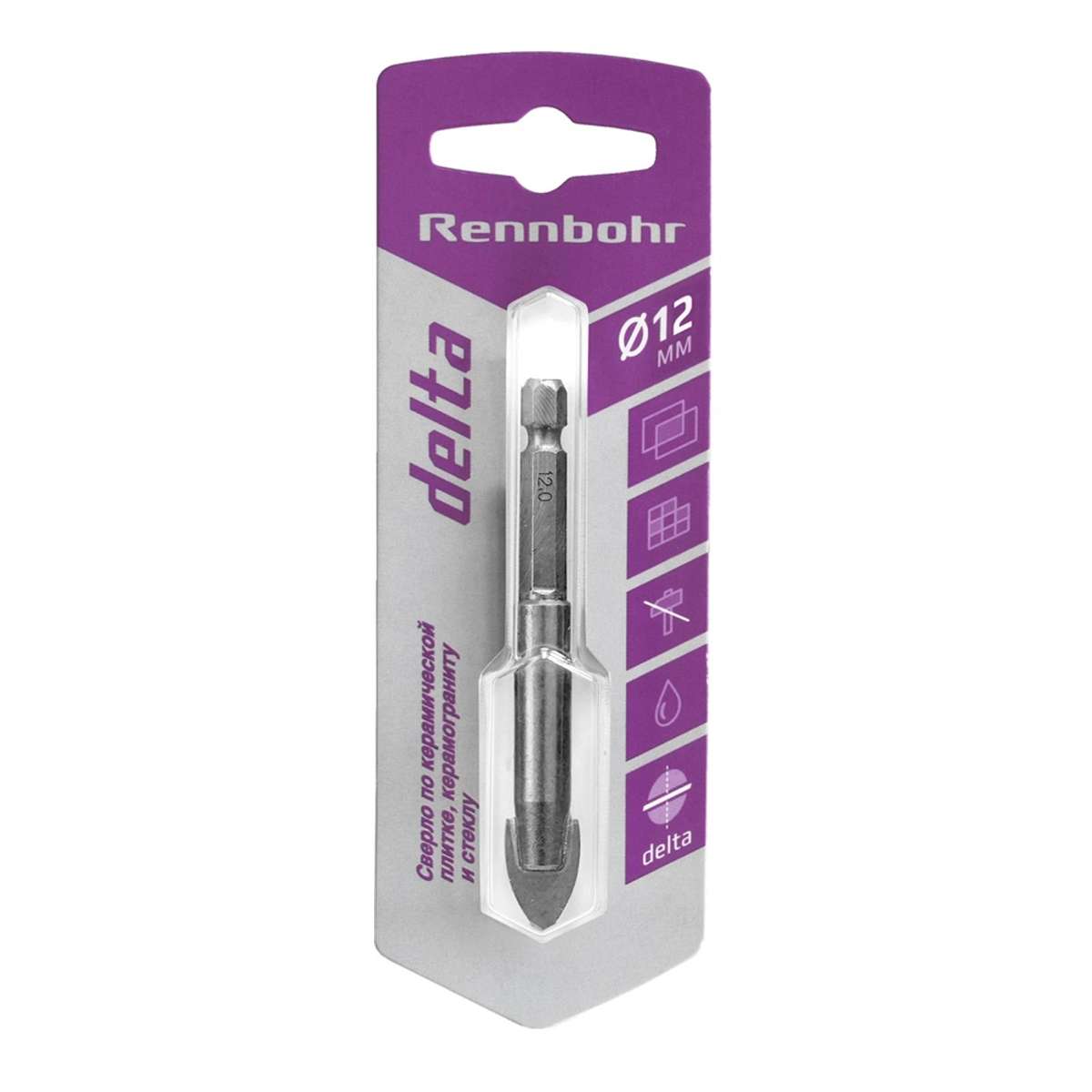 Сверло по керамике и стеклу Rennbohr Delta, 12 мм