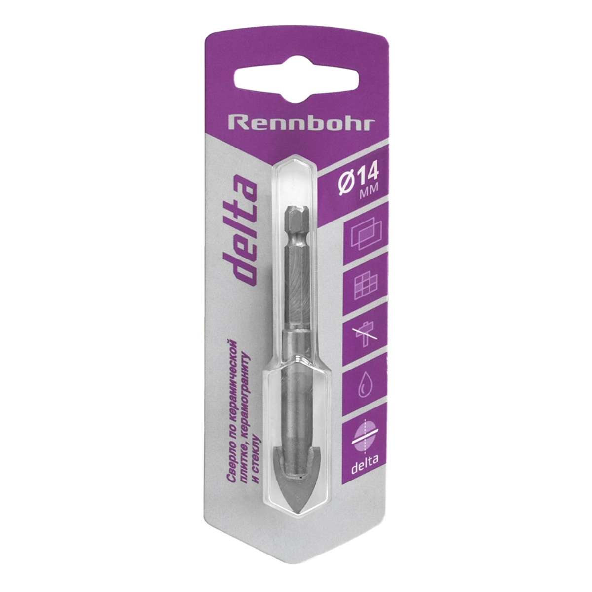 Сверло по керамике и стеклу Rennbohr Delta, 14 мм