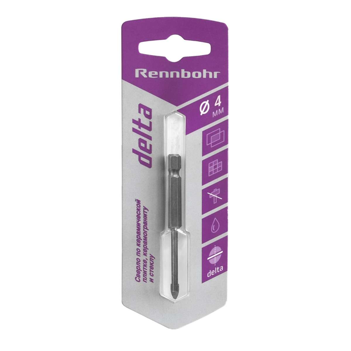 Сверло по керамике и стеклу Rennbohr Delta, 4 мм