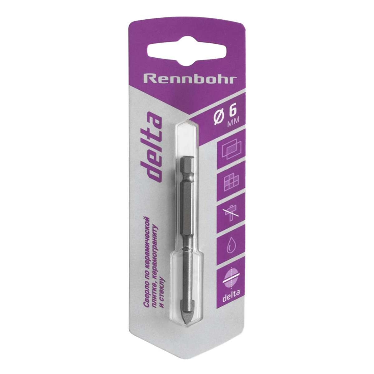 Сверло по керамике и стеклу Rennbohr Delta, 6 мм