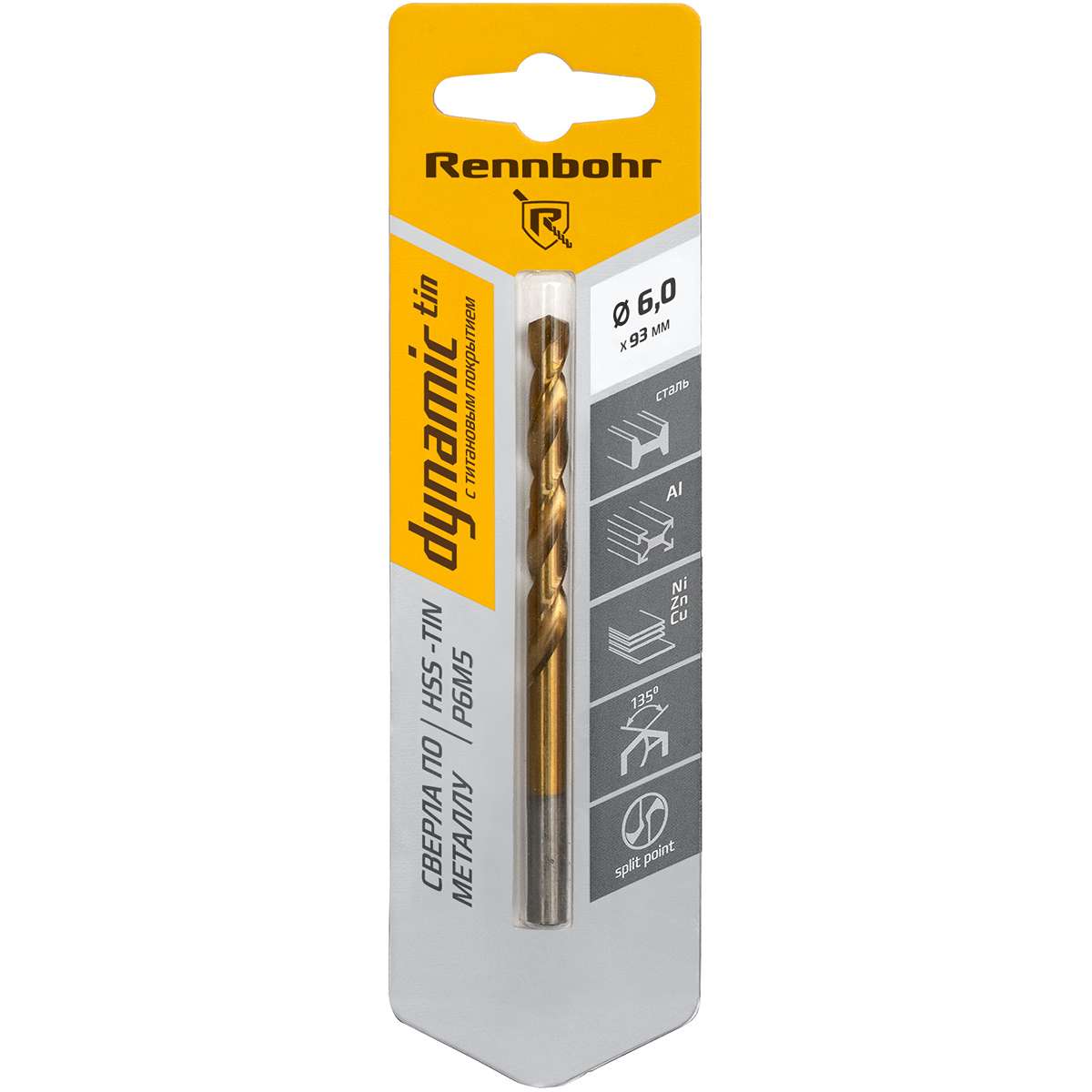 Сверло по металлу Rennbohr Dynamic-Tin, 6 x 93 мм