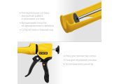 - встроенный в ручку резак для сопла, защита пальца на курке, игла для удаления застывшего герметика, подвеска для руки
