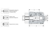 - Ребра на гильзе предотвращают проворачивание анкера в отверстии