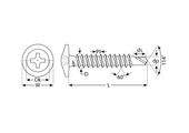 Саморезы с пресс-шайбой и сверлом для листового металла изготовлены из стального прутка с высоким содержанием углерода. Контроль за геометрией самореза начинается с калибровки прутка и заканчивается тщательной проверкой размеров готового изделия. Нормативная твердость стали достигается термической обработкой. Поверхностная твердость 560-720HV, твердость в сердцевине 240-425HV. Саморезы легко вкручиваются обычным шуруповертом или отверткой с крестообразным шлицем PH2 (DIN). Предварительное сверление в скрепляемых материалах не требуется. Геометрические размеры: диаметр пресс-шайбы (W) - 10.5-11.0мм, диаметр головки (Dk) - 6.5-7.0мм, диаметр резьбы (D) - 4.04-4.22мм, диаметр сверла (dp) - 3.1-3.2мм, длина сверла (ds) - 3.7-3.8мм, шаг резьбы (Pi) - 1.41мм.