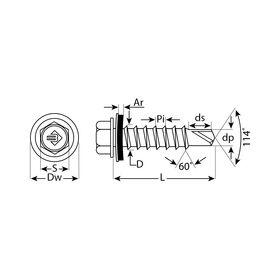 Кровельные саморезы изготовлены из стального прутка с высоким содержанием углерода. Контроль за геометрией самореза начинается с калибровки прутка и заканчивается тщательной проверкой размеров готового изделия. Нормативная твердость стали достигается термической обработкой. Поверхностная твердость мин. 560HV, твердость в сердцевине 240-425HV. Шайба с прокладкой EPDM толщиной 2мм плотно прижимается к кровельному материалу, герметизируя просверленное отверстие. Шестигранная головка выдерживает большой крутящий момент и значительно облегчает вкручивание самореза.