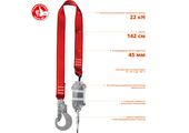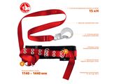 Строп, в сочетании со страховочным поясом или привязью, служит для остановки падения человека при работе на высоте.