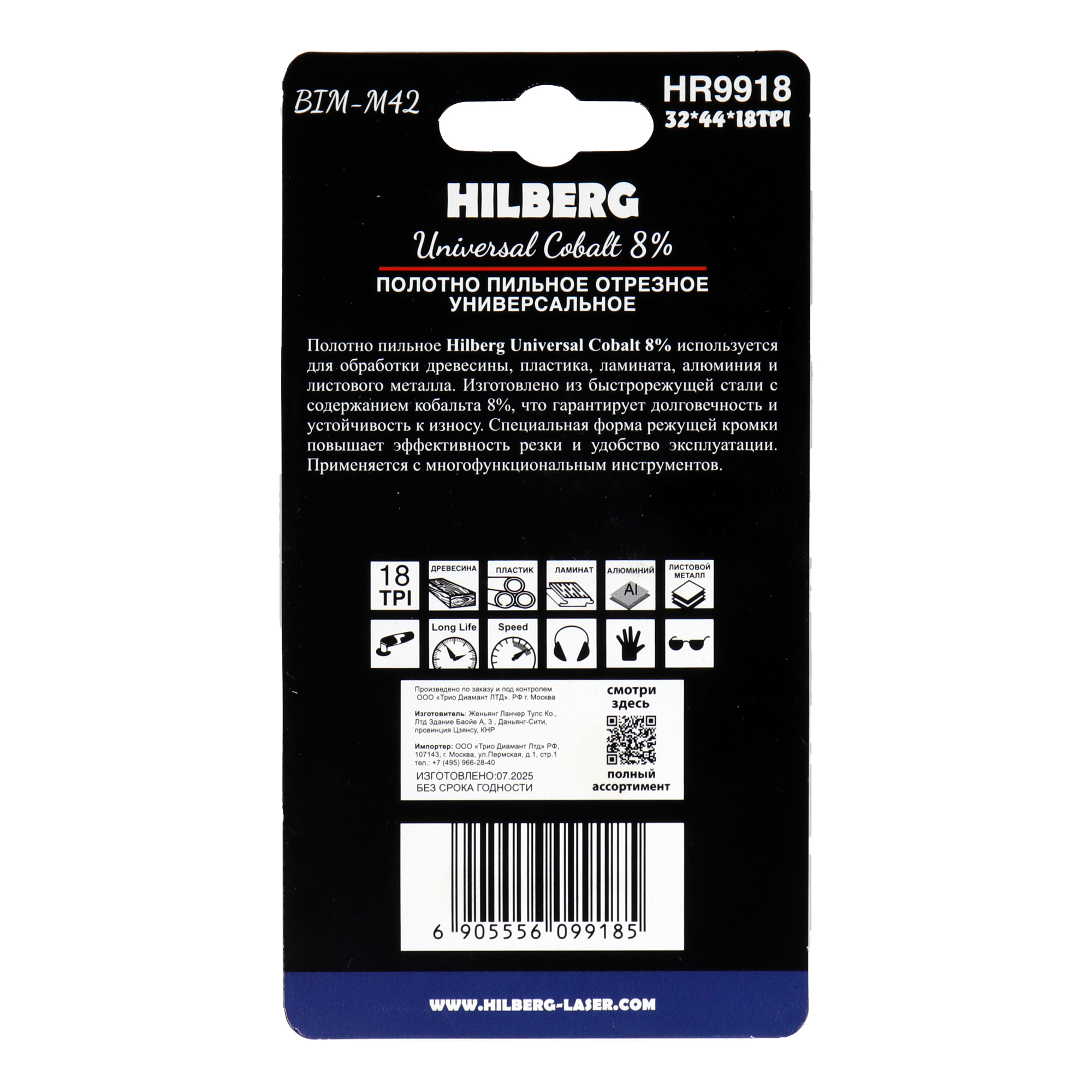 Полотно пильное погружное универсальное Hilberg Bi-M Cobalt 8%, 32*44*18TPI HR9918