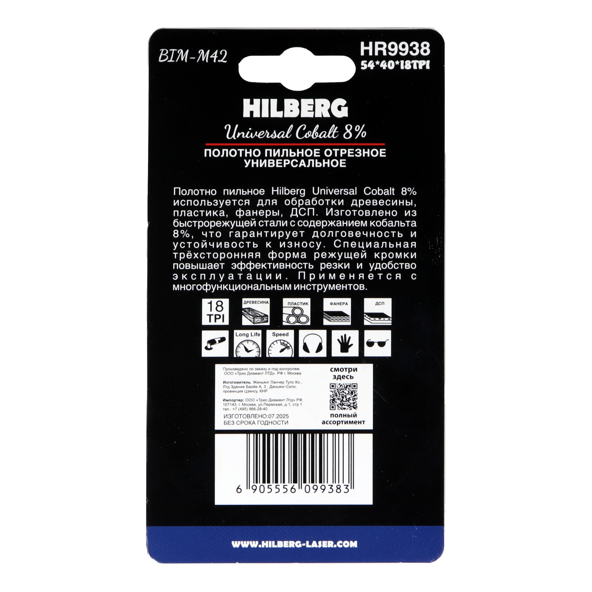 Полотно пильное погружное универсальное Hilberg Bi-M Cobalt 8%, 54*40*18TPI HR9938