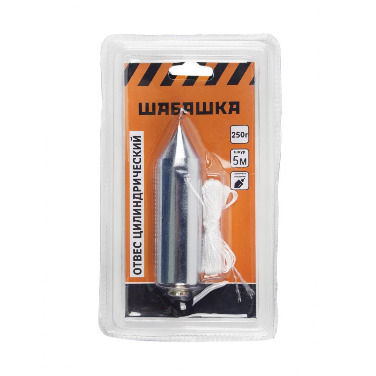 Отвес цилиндрический Шабашка, металл, шнур 5 м, 250 г