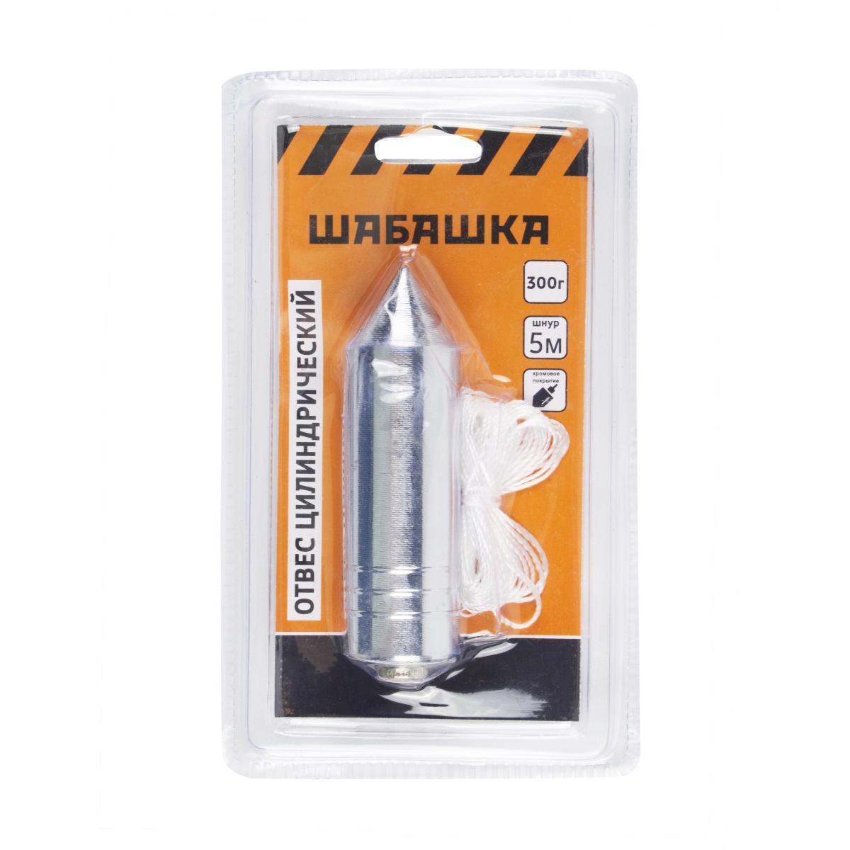 Отвес цилиндрический Шабашка, металл, шнур 5 м, 300 г