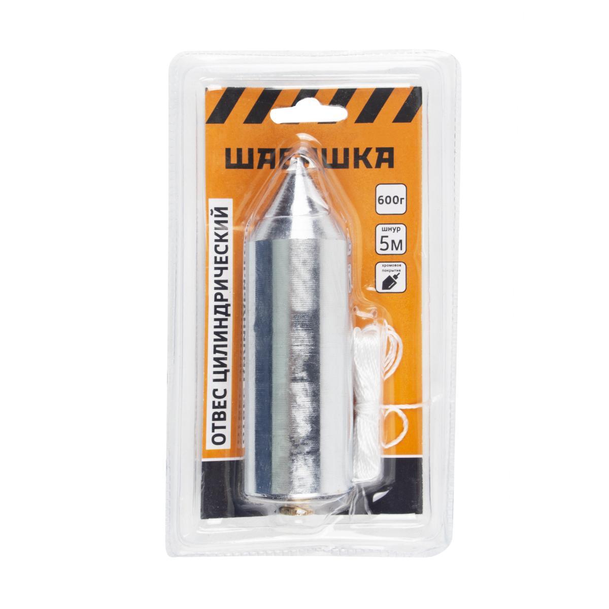 Отвес цилиндрический Шабашка, металл, шнур 5 м, 600 г