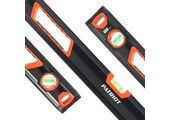 Уровень с резиновыми рукоятками. Подошва уровня имеет ровную форму для удобства и точности измерений. Возможность настройки капсулы 0 - 90 °. Резиновые края защищают уровень от механических повреждений.