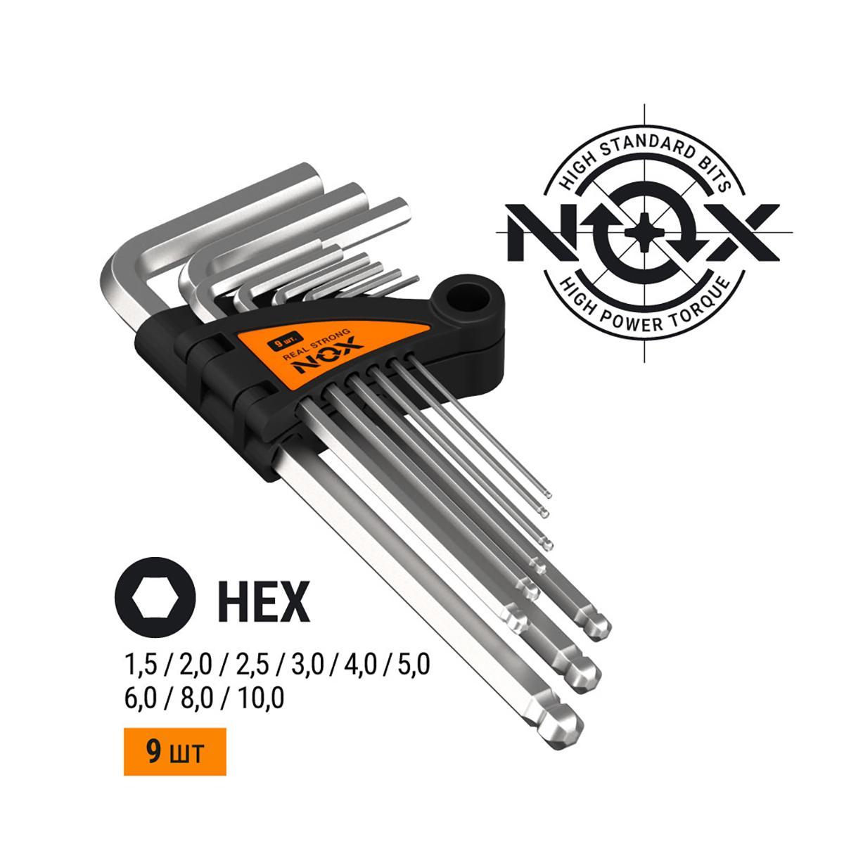 Ключи шестигранные Hex Nox, T1,5 - T10, 9 шт