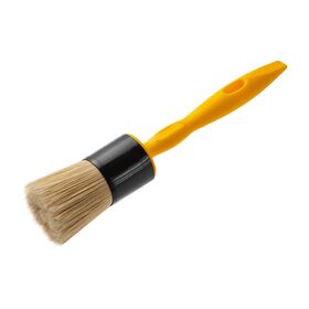 Кисть Эксперт круглая из светлой смешанной щетины оснащена длинной желтой пластиковой ручкой.