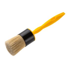 Кисть Эксперт круглая из светлой смешанной щетины оснащена длинной желтой пластиковой ручкой.