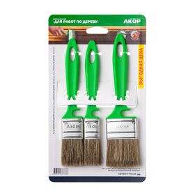 Набор кистей плоских для дерева Акор Эксперт (25, 35, 50 мм), смешанная щетина, пластиковая ручка, 3 шт